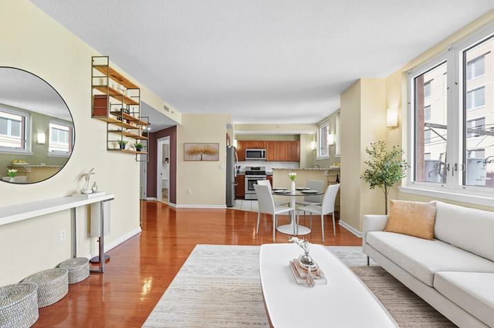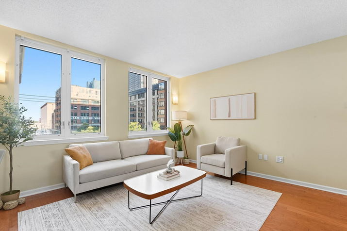 Established on the prestigious Provost Square Plaza within the Powerhouse Arts District of Jersey City Downtown, 143 Morgan Street perfectly blends modern living styles with lofty charming spaces in the most sought-after central location along the waterfront. Residence 2A showcases tasteful composition through this 1100 Sq.ft, 2 Bedroom, 2 Full Bathroom Condominium that includes deeded garage parking and impeccable natural light through an abundance of windows along with a rare, corner-unit layout directly overlooking Provost Square Plaza. Each angle of this home is a consistent improvement on the seamless connection from the open kitchen featuring massive granite countertops, a gas stove, and excessive cabinet storage, to the expansive living & dining areas. The optimized layout is continued through each of the large bedrooms, with the primary bedroom suite designed to fit a king-sized bed along with a 5-piece bedroom set, and a large second bedroom which adorns the stunning corner-window views. Additional features include Central AC, updated primary bathroom, hardwood floors throughout the home, bike storage in the garage, and a spacious outdoor terrace. Enjoy the epitome of living in an opulent neighborhood, in a distinctive, steel & concrete construction with only 5 residences per floor, making the designated washer/dryer room on each floor a functional extension of the home itself. The Powerhouse Arts District allows for zoning to PS-16 school, a 3 minute walk to PATH trains, and a 10 minute walk to the NY Ferry terminal. The building is located amongst award-winning restaurants, cafes, shops, & fitness studios, and a short walk from the newly opened Whole Foods and Harborside Boardwalk.