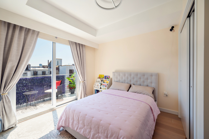 Curated through an assortment of opulent finishes and sophisticated design choices, the Penthouse Residence offers an elegant 3 Bedroom, 2 Full Bathroom layout with private elevator entrance, deeded parking, private rooftop deck, and 100 sqft of private storage. Experience a refined taste through the professionally designed chef's kitchen, accented with Miele gas cooktop, externally venting range hood, baker's oven, drawer microwave, dishwasher, and a Fisher&Paykel fridge. Flowing throughout this organic modern canvas are 8-inch White Oak hardwood floors, recessed lighting, and carefully appointed fixtures that perfectly balance the subtle sophistication of the penthouse. A beautiful contrast is brought forth with abundant natural light, amplified through a large living room skylight, bringing depth to the soft wood tones of the breakfast counter against the luminescent quartz waterfall-countertops that outline the kitchen. Above the Penthouse Residence is a private rooftop deck, bordered by an impeccably engineered, pressure-resistant glass railing and enchanting city skyline views. Brushed further throughout the interior are 3 perfectly placed bedrooms. The primary bedroom boasts a captivating walk-in closet with custom built-in cabinetry and tailored overhead lighting. The ensuite bathroom adorns avant garde vanities, radiant heated floors, and a rainfall spa shower, surrounded by massive, natural stone slabs. Timeless luxury meets boutique exclusivity in The Penthouse Residence at The Jaqueline. Every modern essential is covered with an in-unit washer/dryer, custom window treatments, central AC, and keyless fob entry. Nestled in a quaint and peaceful neighborhood within Historic Downtown Jersey City, this home sits just a 10-minute walk to the Grove St PATH, 8-minute walk to Hamilton Park, and surrounded by an abundance of award-winning restaurants, and boutique stores.